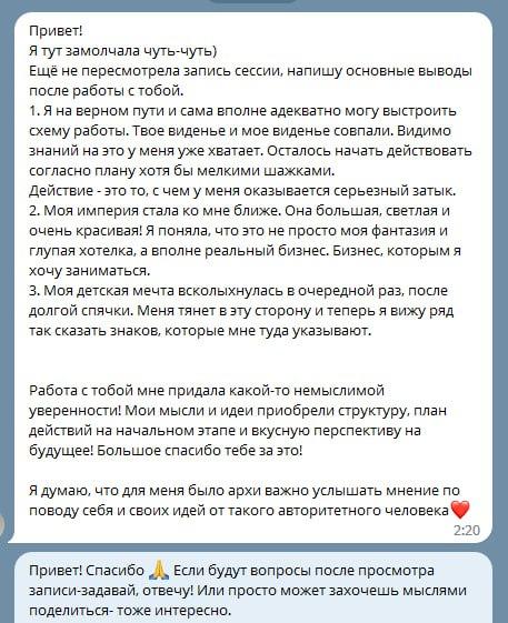 C кем я работаю? Стартаперы и молодые предприниматели, собственники малого и среднего бизнеса, сотрудники уровня ТОП в найме, помогающие практики (психологи, коучи, нумерологи, астрологи, наставники, бьюти-мастера, игропрактики и т.д.), которые хотят больше раскрыть свой потенциал, чтобы выйти на новый уровень заработка и жизни